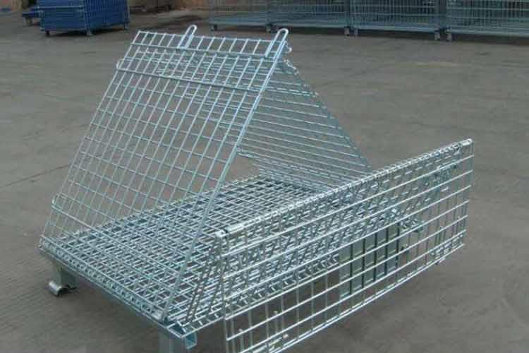 可折疊蝴蝶籠的主要原材料是高線拉成的鋼絲,一般絲徑是5mm,6mm,6.4mm。網(wǎng)片焊接的網(wǎng)目間距一般為50×100,100×100,50×50。折疊式倉庫籠采用U型鋼焊接而成,U型鋼是冷軋帶鋼軋機軋制而成,底部四角采用沖壓件一次沖制而成。